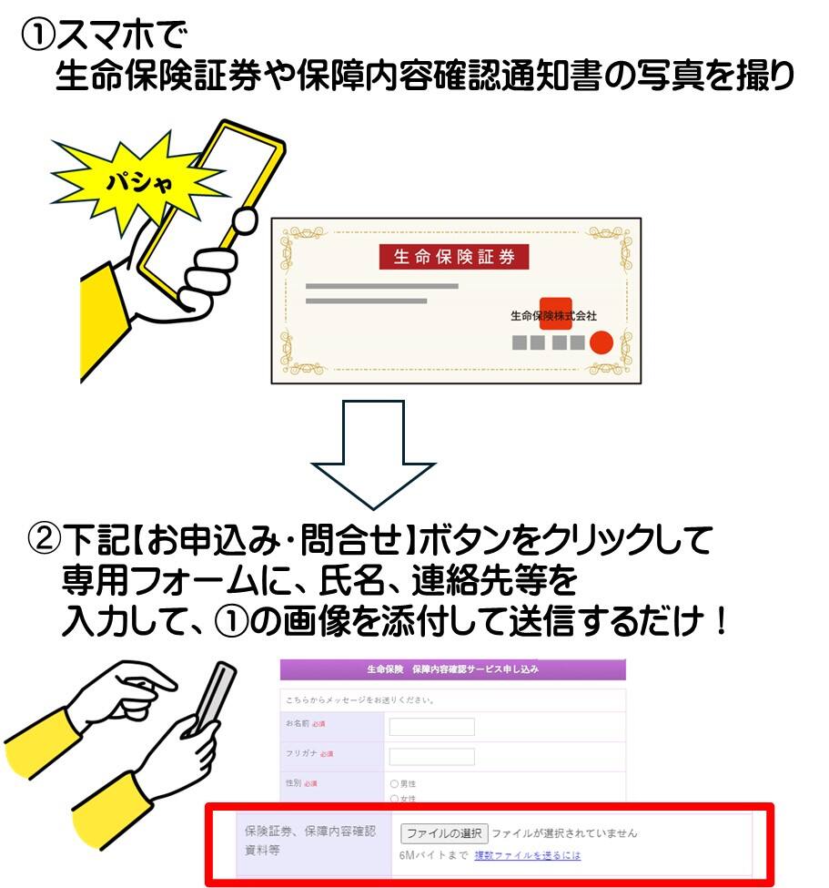 生命保険 保障内容確認サービスは、弊社より三井住友海上あいおい生命保険株式会社に委託し作成することになります。したがいまして、いただきました個人情報につきましては、三井住友海上あいおい生命保険株式会社と共同利用することをご了承ください。なおいただきました個人情報に対し、三井住友海上あいおい生命保険株式会社が直接、営業やご連絡等をすることはありません。