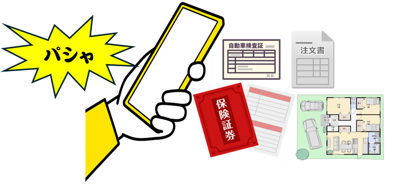 - スマホでご加入中の自動車保険証券や、車検証、注文書等の写真を撮り